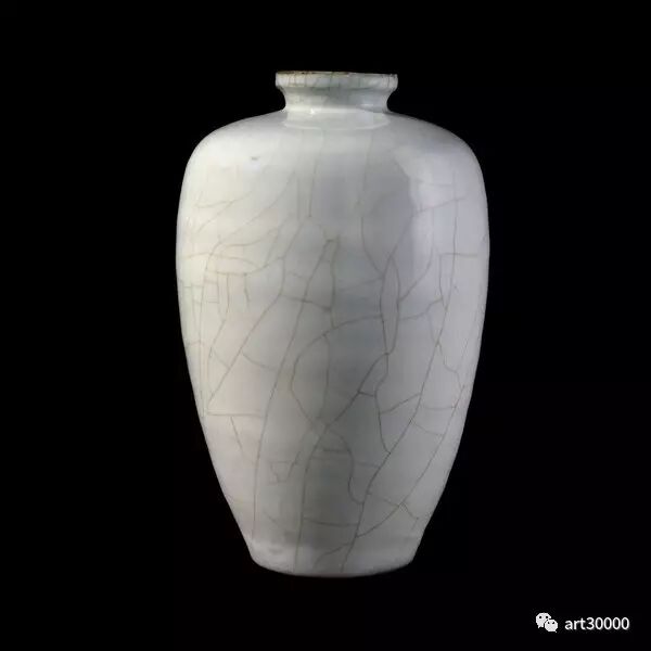 这个极佳的瓷瓶属于一种含铁量极高的暗胎土瓷器。它通常有多个釉层,被放在还原环境(注1)中进行烧制形成浅灰色表面,上面布满了诱人的浅棕色装饰裂纹。