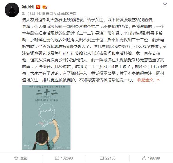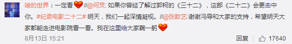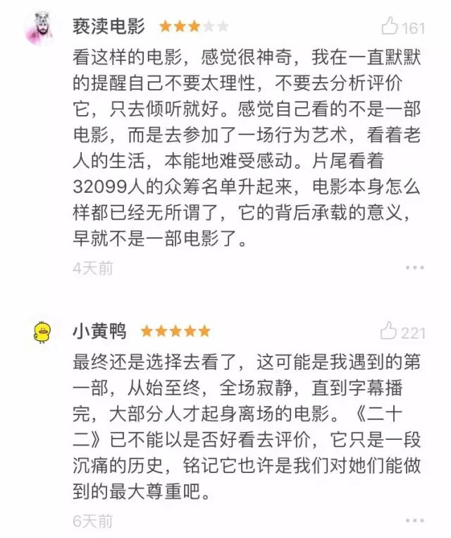 很多人成了“自来水”,主动向身边人推荐《二十二》,明星们也主动在微博上帮助宣传,越来越多的人走进了电影院。