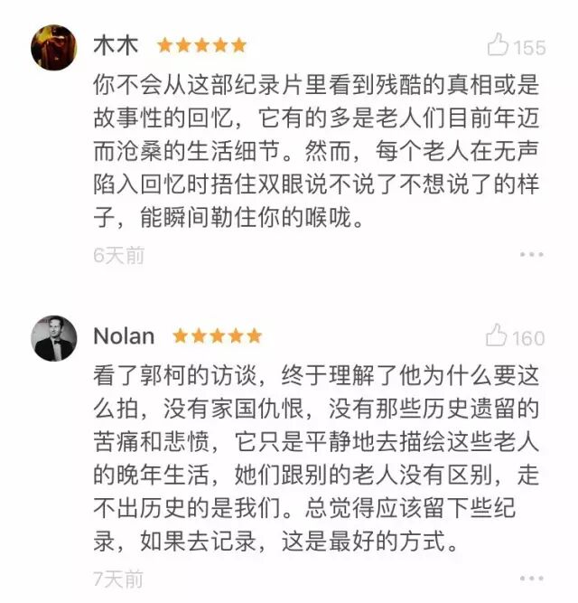 他没有使用过多的电影手法,也没有加入太多史实,只希望能看到这些老人最真实的一面。
