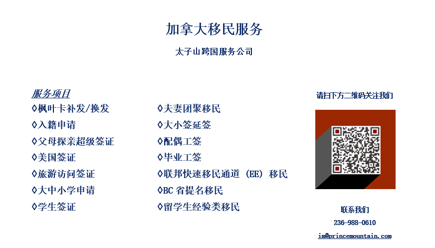 【如果您需要贴心省事的申请服务,请直接拨打206-988-0610或者扫描下方二维码吧!持牌移民代理将竭诚为您服务】