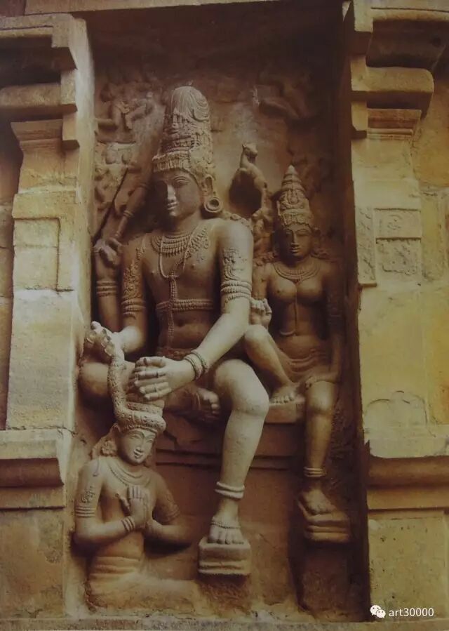 【艺术三万年】佛教传说接受湿婆和雪山女神花环的守财童子-印度朱罗王朝时期雕塑